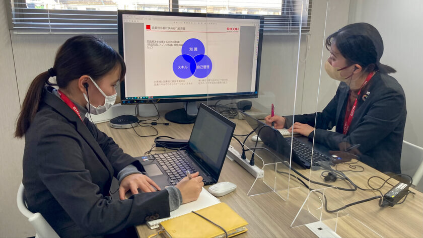入社して2か月間は在宅オンライン研修が基本で、リコージャパンのことや営業の仕事について座学で学びました。