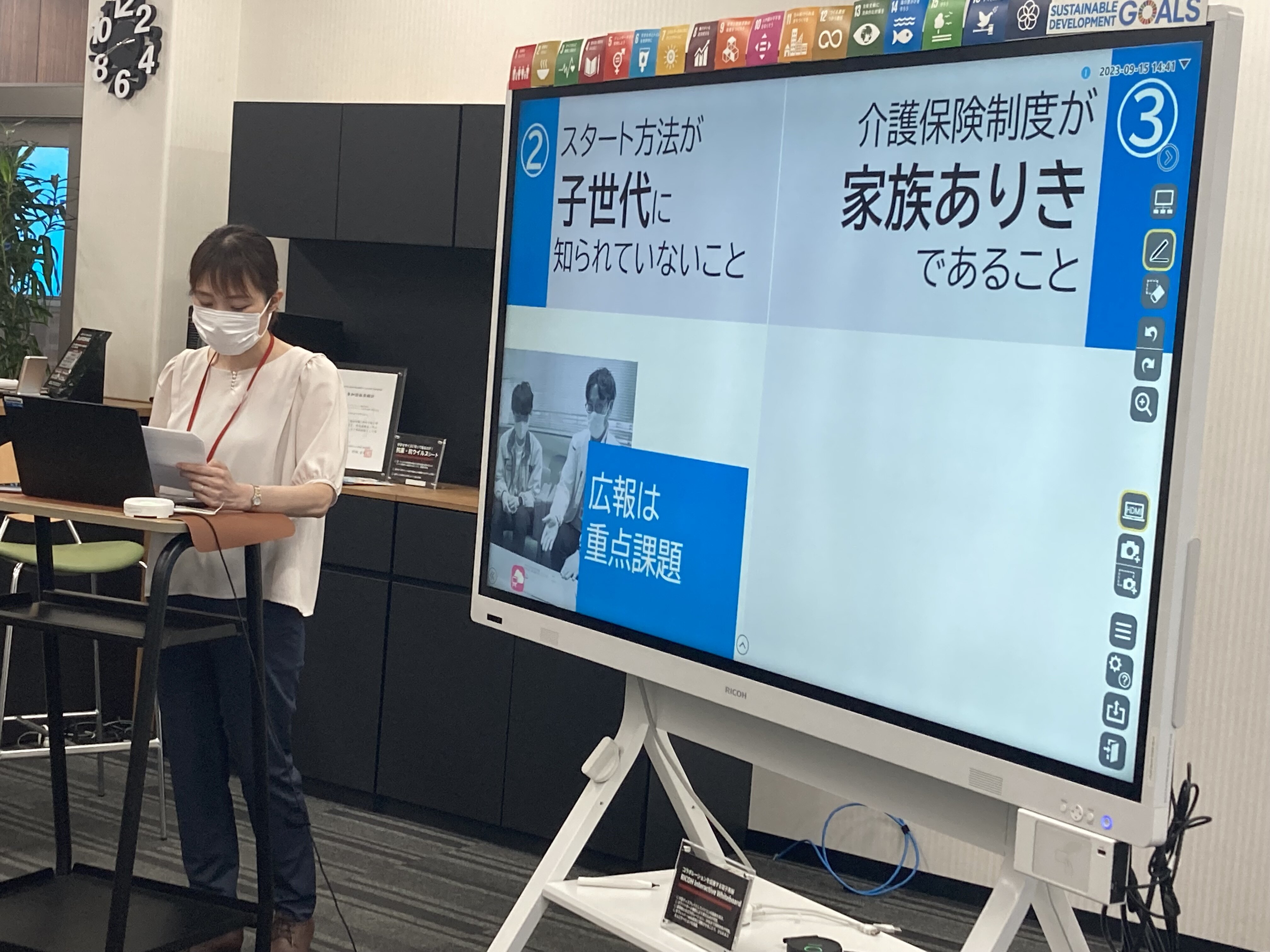 「おかやまSDGsアワード2021」を受賞された、社会福祉法人藤花会 杉山 香織様にご講演いただきました。社会問題である“介護離職”についてのお話と、"介護を個人の課題ではなくみんなの話題にしよう"というお取り組みについてお話いただき、私たちも大変感銘を受けました。