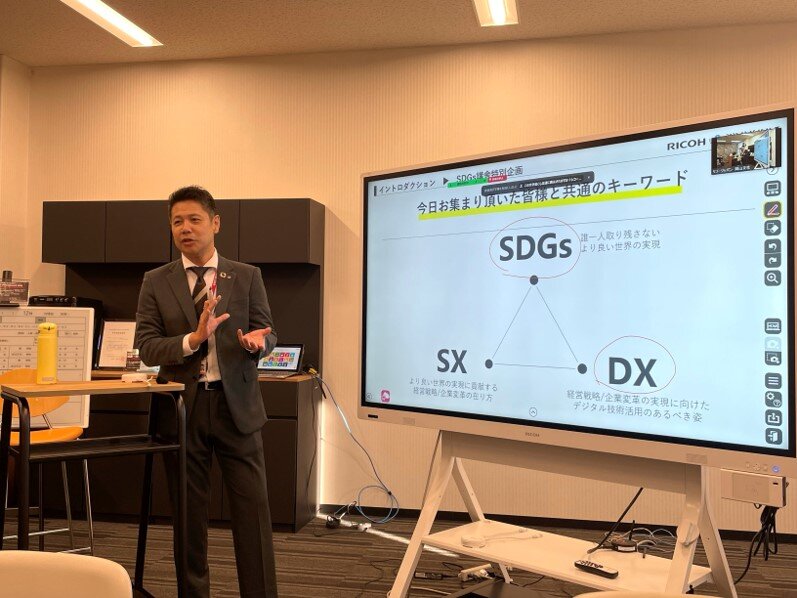 リコージャパン岡山支社オリジナルの「アセスメント基準書」を使って、SDGsの取り組みを分析する意義を理解し深めることを目的に企画したワークショップです。岡山県内企業の実際の取り組みについてグループワークでアセスメントを行いました。"難しい!"の声もちょこちょこ聞こえてきましたが、最後にはグループごとにまとめた内容をばっちり発表できました(*^^*)