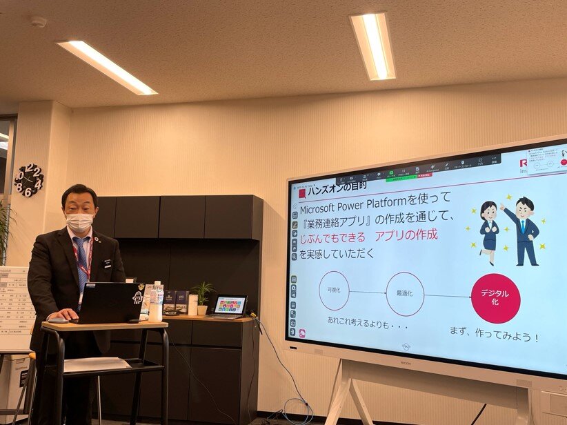 「DX」の第一歩としてアプリが簡単に作成できることをパソコンを使って実際に体感!社員が上司にアプリを使って簡単に業務連絡ができる"業務連絡アプリ"を作成しました。