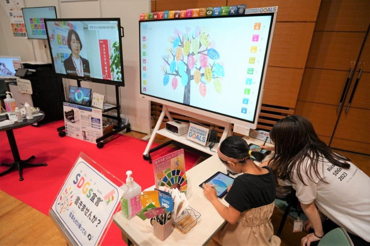 展示ブースの横にはデジタルメッセージボードを設置。ご来場のみなさんのSDGs宣言を葉っぱに書き込んでいただきました。