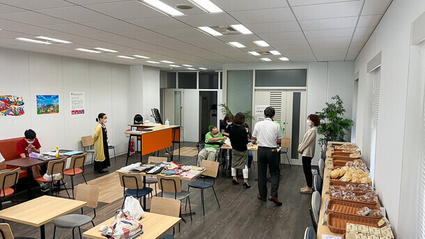 社会貢献活動の一環として、障がい者支援施設で作られた手作りパン・焼き菓子等の販売を実施しています。