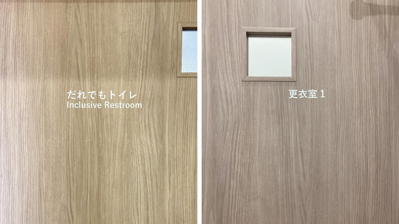 更衣室の呼称も性別ではなく、「更衣室1」「更衣室2」としています。