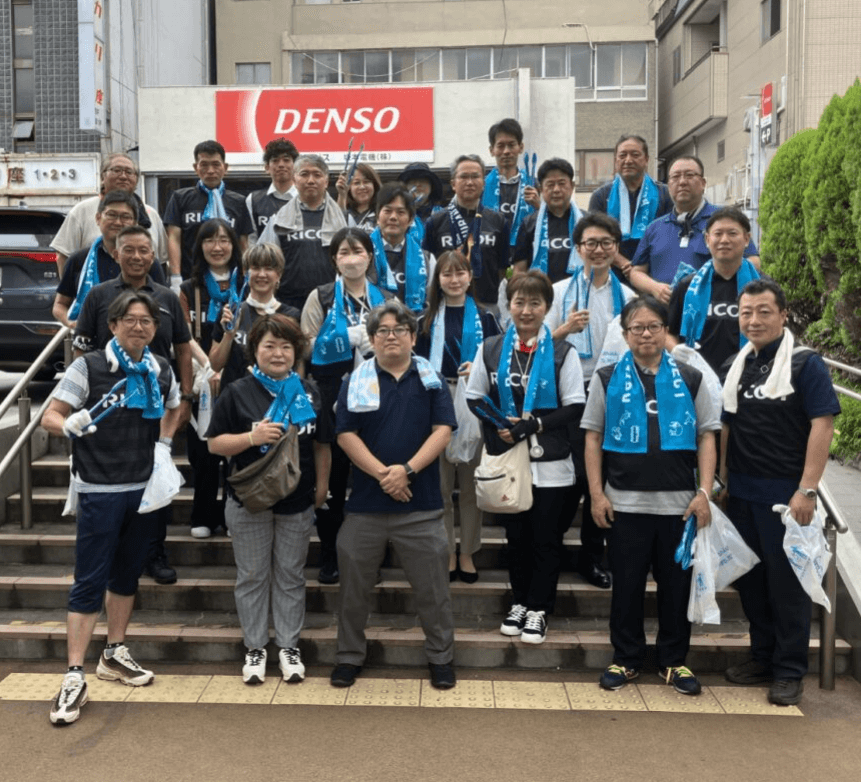 今回からビブス(RICOH & BlackRamsTokyo 仕様)を作成・着用して清掃活動に参加しました!