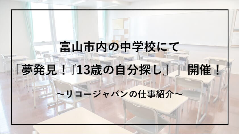 富山市内の中学校にて「夢発見!『13歳の自分探し』」開催!~リコージャパンの仕事紹介~