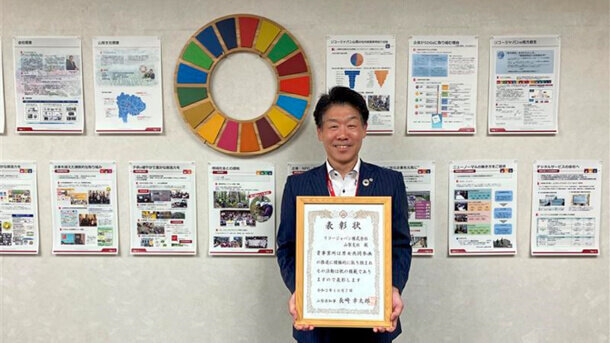 令和2年度の事業者表彰は3社が受賞し、リコージャパン山梨支社は女性社員のワーキンググループ「みつばち娘」による職場環境の改善活動や社員のスキル向上のためのセミナー、異業種交流会の実施など、女性活躍を積極的に推進していることなどが評価されました。