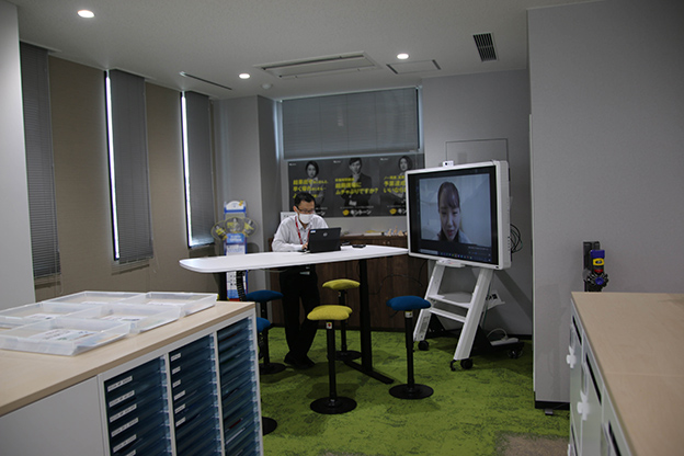 インタラクティブホワイトボード(電子黒板)やRICOH Meeting 360(WEB会議デバイス)を活用したコミュニケーションエリアを随所に設けています。