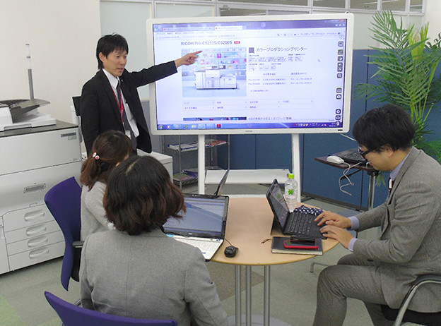 断熱材の導入、二重窓への変更、加えて高効率な空調や照明、自動制御システム「RICOH Smart MES」 を導入し、省エネ50%を実現しました。リコージャパン初となる既存建物の改装によるZEB化を実現しました。