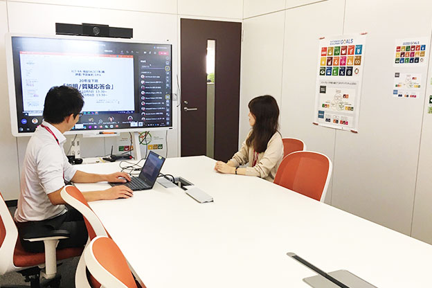 在宅勤務・直行直帰などテレワークでの活用に加え、支社内発案の業務効率化アプリケーションで社内DXを推進。スケジュールと連携した会議室予約システムで利用状況を見える化するなど、支社の業務効率改善ツールとして活用しています。