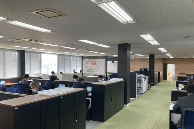 一部フロアを多目的スペースとして活用しています。セミナー、社内勉強会、執務スペース・・・と、必要に応じてレイアウトを可変させ、スペースを有効活用。“お客様”、“社員同士”などコラボレーションが生まれる空間です。