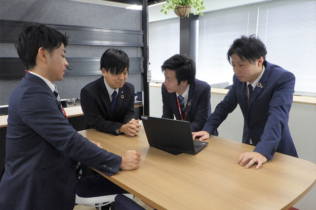フリーアドレスを採用しています。当日の予定・仕事内容に応じて、“ソロワーク”、“チームワーク”が可能となるレイアウト配置を採用しています。活動全体の高効率化をすすめています。