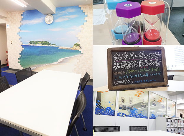 湘南の海と緑をイメージし、木の香りとぬくもりに包まれた空間に音響設備でネイチャーサウンドを流し、ストレス軽減につながるオフィス空間を演出しました。一杯のコーヒーと共に心地よい時間をご提供します。