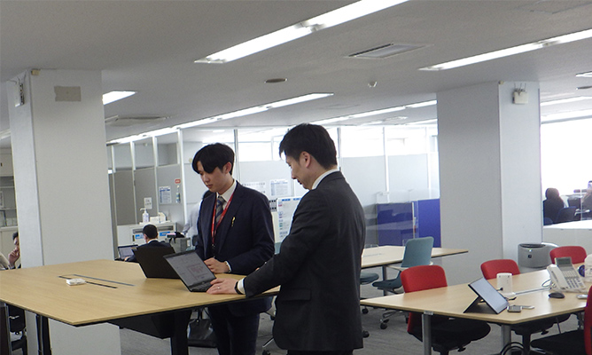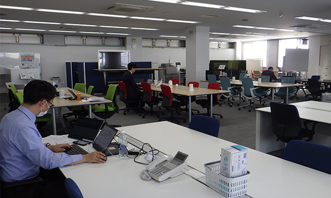 フリーアドレスを導入し、オープンなコミュニケーションが取り易くなりました。併せて、少人数の打ち合わせスペースやパーソナルスペースを設けることで、業務に合わせ働く場を選択することができるようになりました。