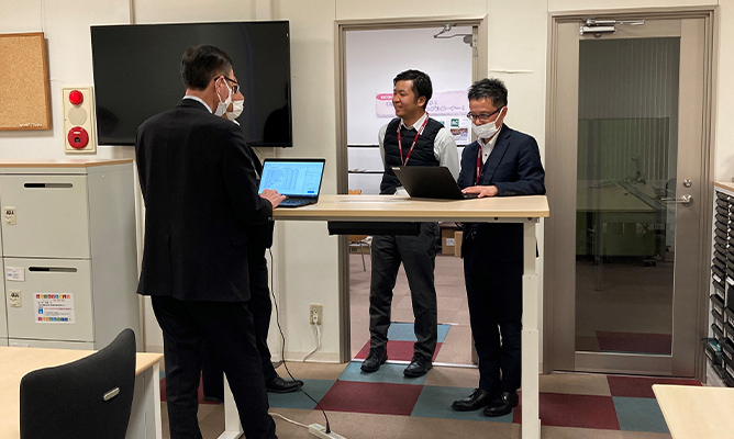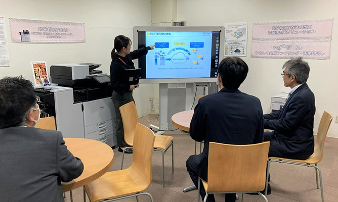 ショールームでは、事例紹介やデモンストレーションを行っています。お客様の課題やご要望に寄り添ったデジタルサービスを体感していただき、地域のお客様・パートナーの皆様と共にアップデートできる場にしています。