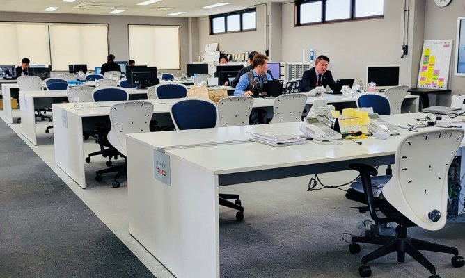 ユニバーサルレイアウトを採用しています。組織長席を廃止し、メンバーと同じ並びに配置することで、信頼関係の構築とコミュニケーションの活性化を図っています。