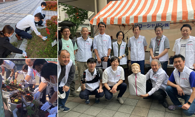地域の皆さまと一緒になってボランティア活動に参加しています。例えば、定期的な清掃活動や花壇の手入れ、緑化活動、フードバンクへの寄付等、地域とともに歩む事業所として地域社会に貢献しています。