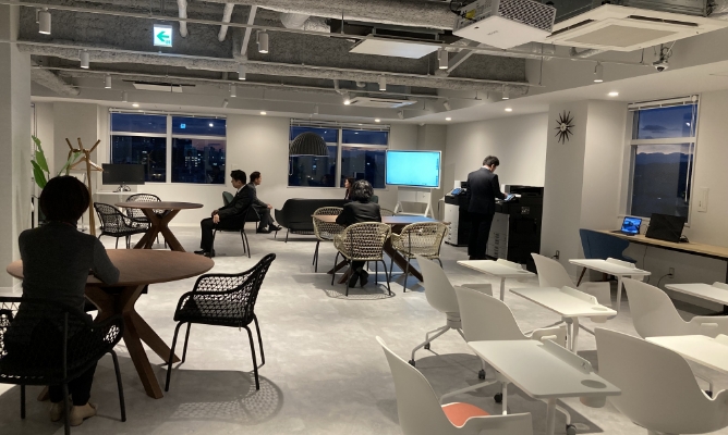 コミュニケーションの活性化として、社員が集まれるスペースを構築し、打合せや休憩スペースとして活用しています。また暖色系ライトを採用することでリラックス効果が得られています。
