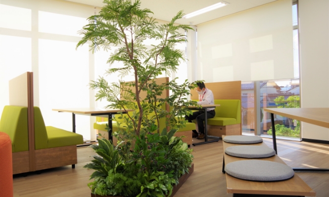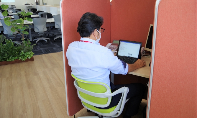 オフィス内外を問わず、働く時間や場所を選ぶ働き方「ABW(Activity Based Working)」を取り入れています。今やるべきことに合わせ、集中ブースなど最適な環境で業務を行い、生産性向上を目指しています。