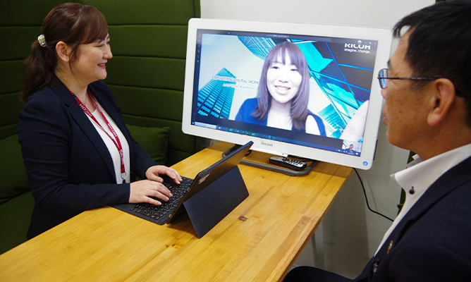 事業所にいながら全国各地の拠点はもちろん、パートナー会社ともオンラインで接続する事が可能となり、ViCreA 高山を通じて最新の情報をいつでもご案内する事ができます。