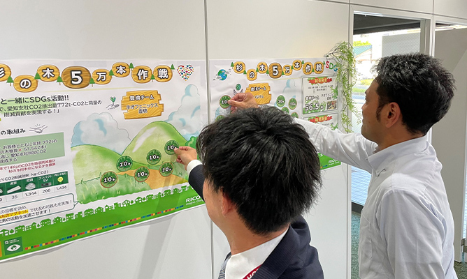 省エネ機器ををご導入いただくことで、環境負荷の軽減に繋がります。対象機器をご導入いただくごとに「杉の木マグネット」を社内に掲示して可視化を実践し、お客様と一緒に取り組むSDGs活動となっています。