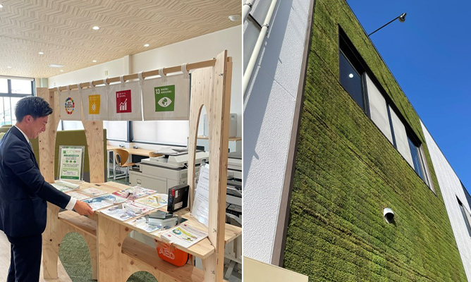 苔植物の力強い生命力を利用した緑化活動の実践。日々のメンテナンス等もご紹介いたします。三河地方の間伐材を利活用したオフィス家具での森林資源活用の実践。次世代へつなぐ工夫をした実践事例をご紹介いたします。