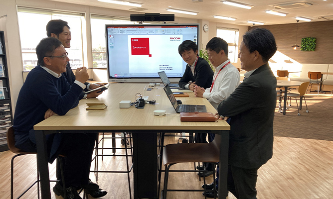 必要な時にサッと集まることのできるオープンカウンターでは、対面でのコミュニケーションが取り易く、営業やカスタマーエンジニアの朝礼など、ちょっとした打ち合わせで活用されています。