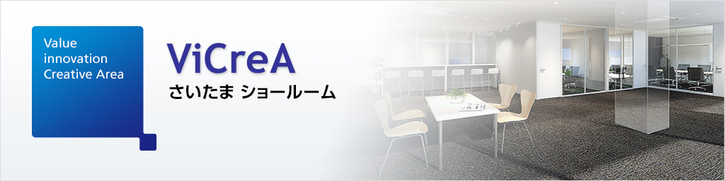ViCreA さいたま ショールームでは、お客様により快適にお過ごしいただける空間を創り上げました。各種セミナーに加えリコーがご提案する新しい職場スタイルの見学や、お客様のお仕事に直結するソリューションの展示を行います。