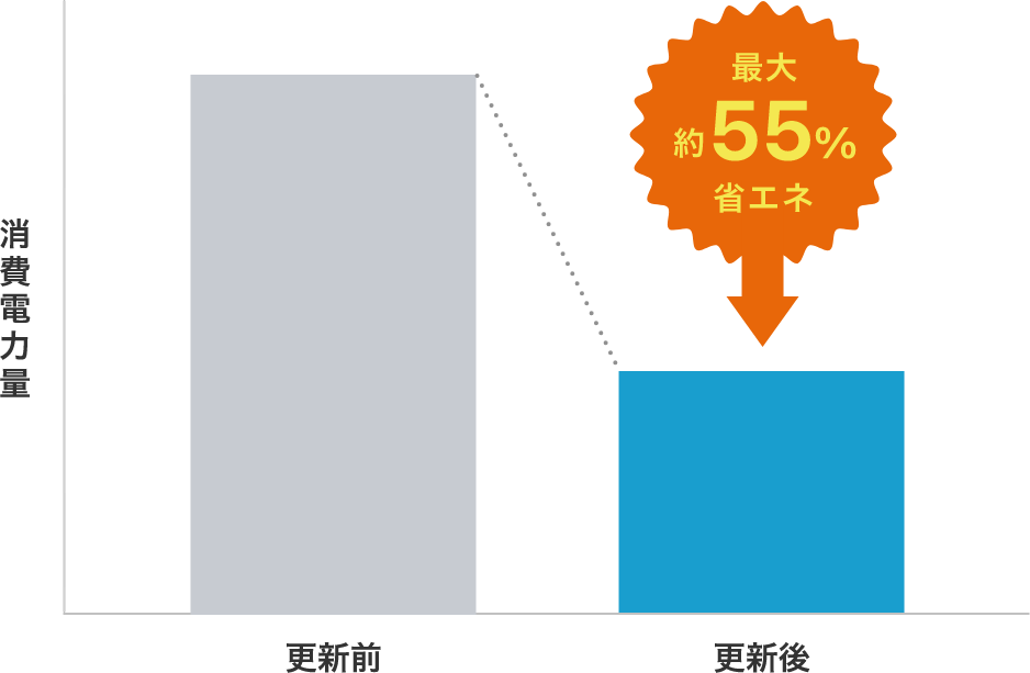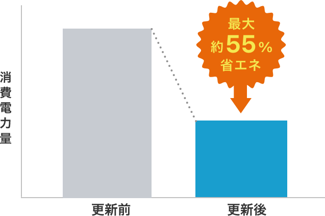 エネルギー使用量削減のため、省エネ性と環境性が高い最新モデルへの更新をご提案いたします。