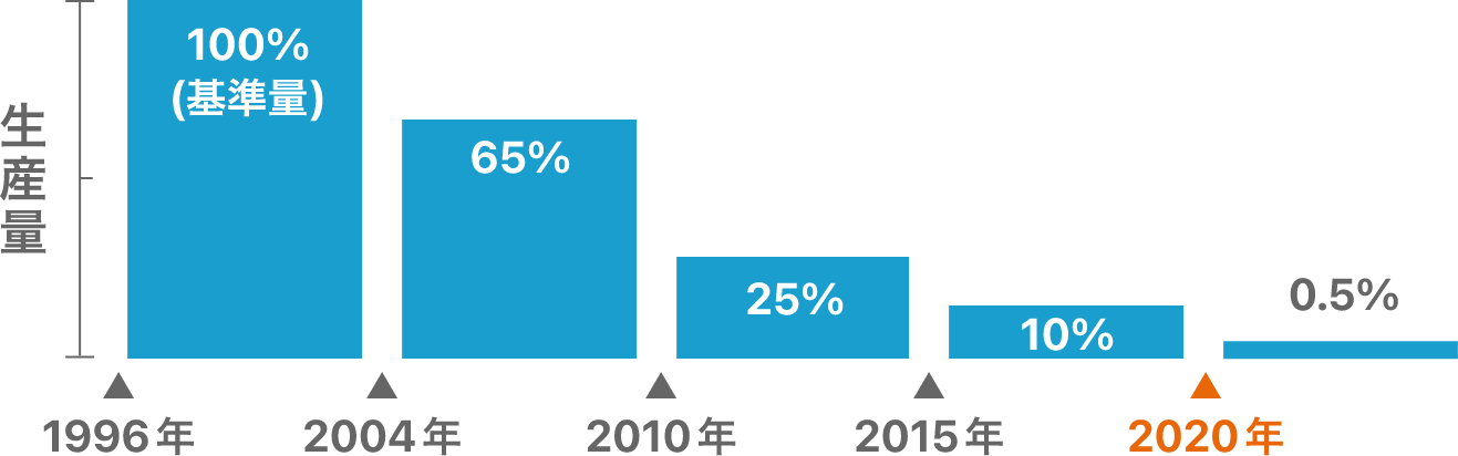 R22(HCFC)冷媒には、オゾン層を破壊する成分が含まれているため、生産量が大幅に規制されており、2020年には実質全廃となりました。そのためR22冷媒は、2015年以降は品薄状態となっており、R22冷媒を使用しているエアコンが故障した場合、修理に時間がかかる場合があります。