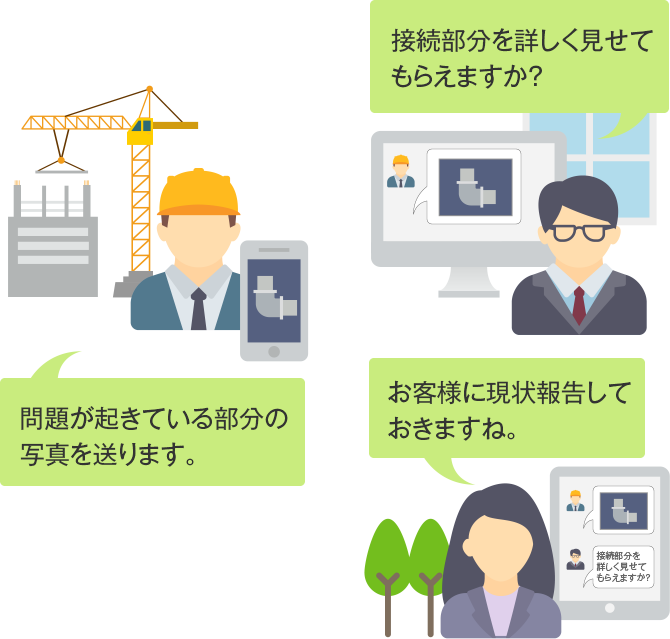 • ビデオ通話で現場の状況をリアルタイムに伝えられます。