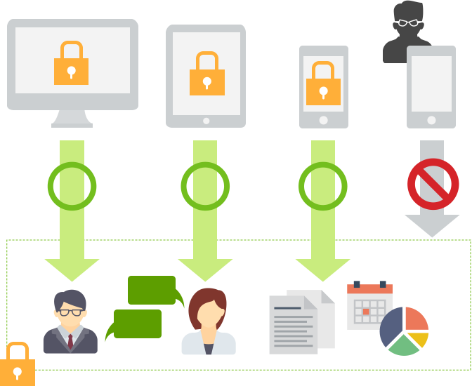 ネットワークを介して、desknet's NEOに登録されているユーザー情報と組織情報を自動取得・同期できます。ユーザー・組織の2重管理が必要なくなり、運用の手間とコストが大幅に削減されます。