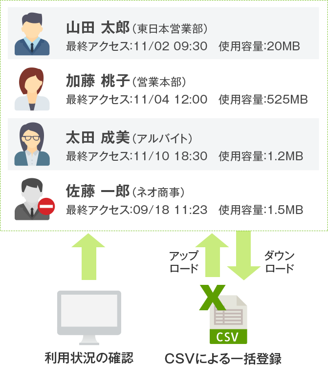 • 社内外すべてのユーザーについて利用停止・削除できます。