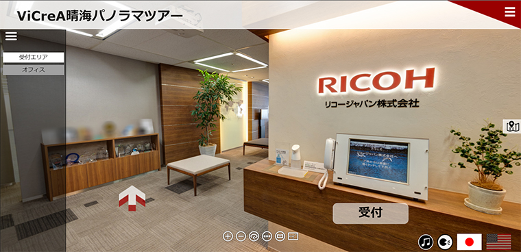 RICOH 360°画像撮影+アップロードサービスは、施設・空間紹介に特化した360°画像の撮影・編集から「THETA 360.biz」などのオンラインプラットフォームへのアップロード(代行)までをご提供するサービスです。