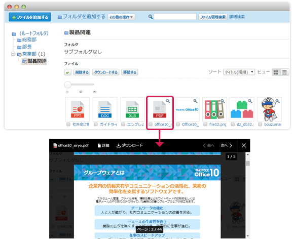 まとめて複数ファイルをアップでき、ファイルのアイコン表示とプレビュー表示で必要なファイルを見つけやすくなりました。