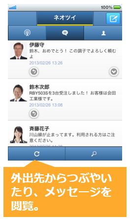リアルタイムなコミュニケーションによって、内線電話や社内メールの大幅削減につながります。