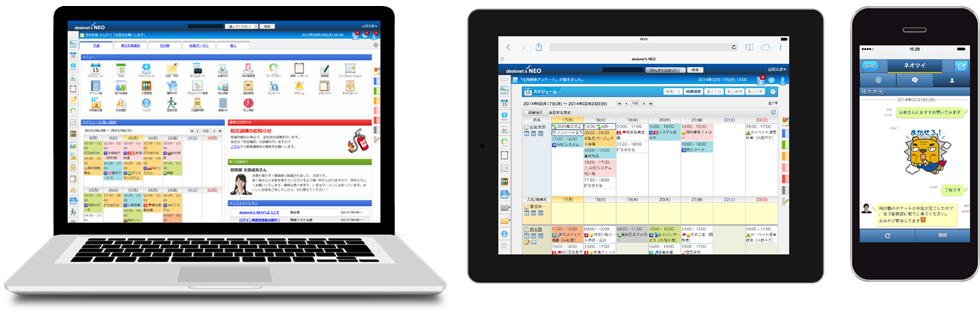 PCやタブレット、スマートフォンから、desknet's NEOの見やすさ・使いやすさをぜひお試しください。