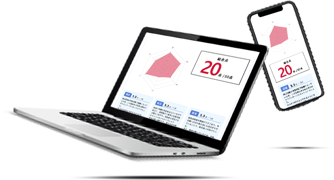 16項目の質問に対し5段階評価で自社の状況をお答えいただくだけ。数分で診断できます。
