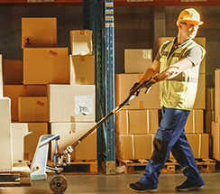 従来は、工場内のパーツ運搬はハンドリフトで行っていました。