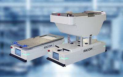 リコーグループでは、倉庫から組み立ての作業場までの部品の運搬作業において、ハンドリフトを活用していました。例えばハンドリフトでテーブルの昇降を行う場合は手動で行いますが、昇降も移動も人の力に依存しており、対応可能な重さや移動距離にも制限があります。また、バランスを崩して部品の荷崩れによる破損、衝突等の事故が発生したり、従業員が腰を痛める等の課題がありました。
