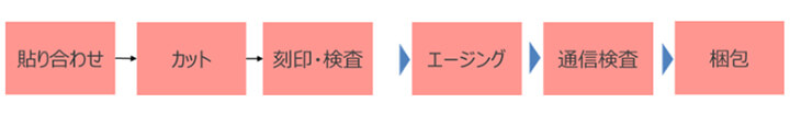 上記(1)から(3)まではオンライン化され、貼り合わせから外観検査まで一貫して行われます。上記(4)から(6)までは、それぞれ独立した工程として存在します。