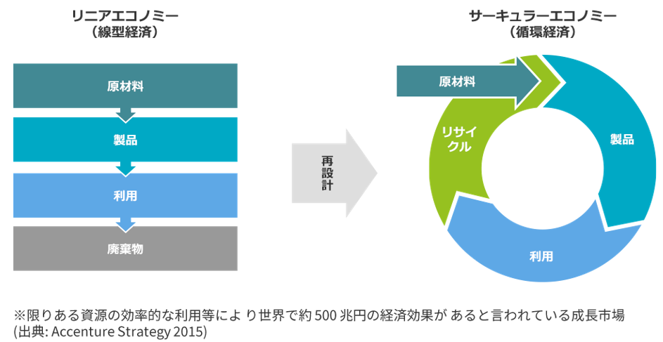 このような背景により従来の直線経済から脱却し、循環型経済への転換が求められています。