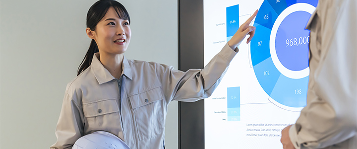 E社が抱える課題は、従来のエクセル工程表の更新・共有の手間と、打ち合わせ時のホワイトボードへの手書き作業でした。デジタル大画面システムの導入により、リアルタイムな情報共有が可能となり、手書きデータのデジタル保存・履歴管理ができるようになりました。また、3Dデータを直接画面上で確認・書き込みできることで、設計レビューの効率も向上しています。結果として生産状況のタイムリーな周知が実現し、現場の生産計画への意識向上とミス・漏れの軽減につながりました。