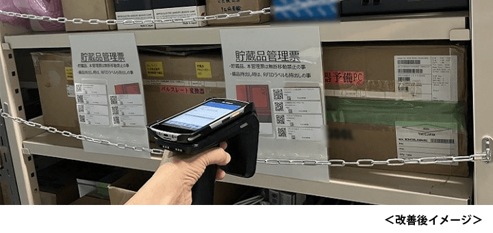備品管理の単位(箱・ケース単位や、ケーブル1本単位…といったさまざまな区分)や、置き場が整理整頓されたことで、備品表示ラベルをRFIDにして、全体で備品在庫管理ができるようになりました。