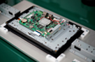 入荷配膳工程より運搬されてきた部材を、ロック治具を活用し組立開始。指示書通りに組立作業を完了させることで治具のロックが外れ、組立品の取り出しが可能となるため組み立てミスの防止が図れます。