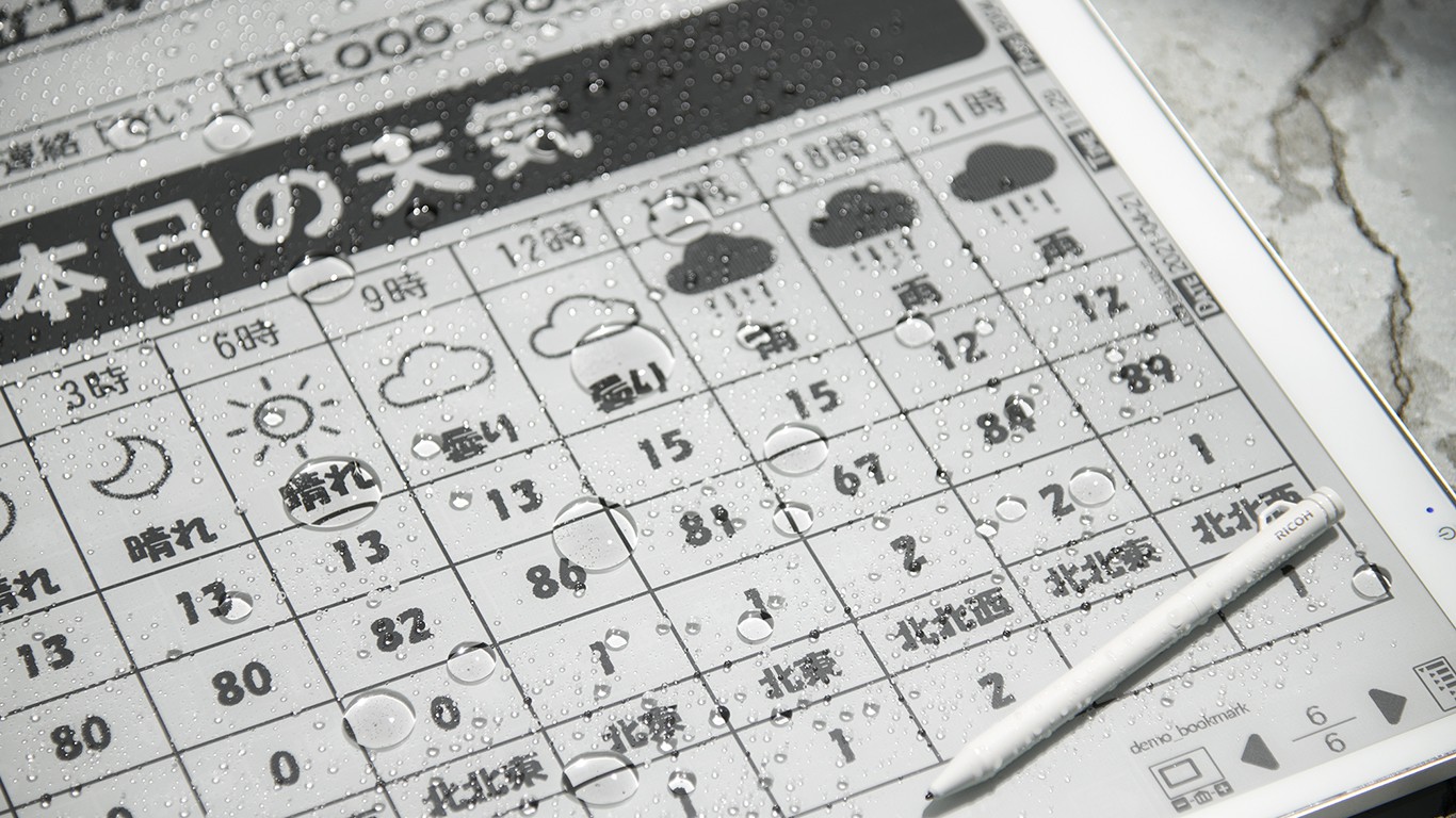 電子ペーパーだから、電源をオフにしても、資料を表示したままにできます。また、バッテリー内蔵なので、電源がない場所でも使えます。
