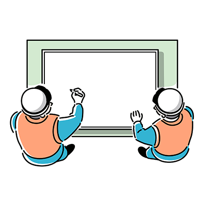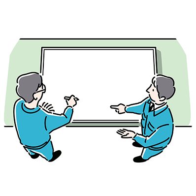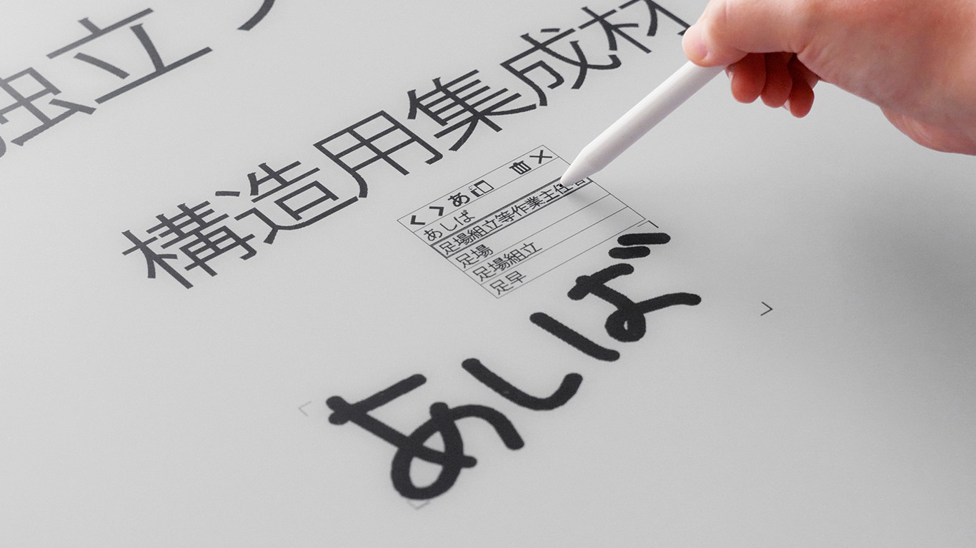 防塵防水(IP65)のeWhiteboardなら、屋外の現場にも設置できます。現場と事務所を繋ぐことで、事務所にいながら複数の現場に図面を表示させ、手書きでリアルタイムに指示を出すことができます。書き込んだデータはそのままクラウドストレージ※に保存することも可能です。危険予知活動や掲示用途でもご活用いただけます。これにより、就業時間前後に発生していた紙の印刷や保管の手間、複数の現場への移動時間を削減できます。