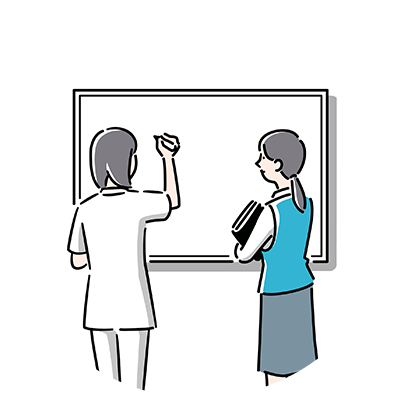 予定が変わりやすい空床情報や面会予定等、離れた病棟間での連絡板として活用できます。緊急時は電源のない屋外にも設置でき、伝達時間を短縮し、コミュニケーションエラーを削減します。