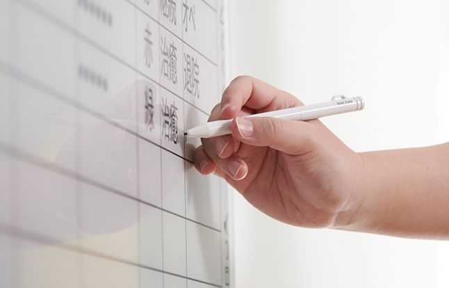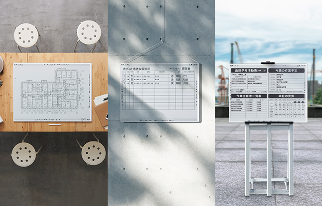 予定が変わりやすい空床情報や面会予定等、離れた病棟間での連絡板として活用できます。緊急時は電源のない屋外にも設置でき、伝達時間を短縮し、コミュニケーションエラーを削減します。