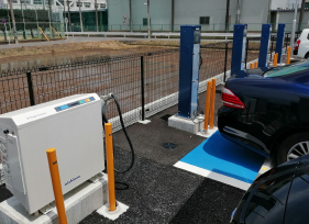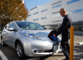 リコー環境目標達成に向けた先行実践拠点としてEV車とEV充電器を導入、運用。