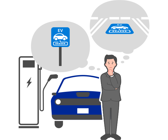 例えば、必要に応じて、EV充電器用案内板や路面標示、EV充電器用屋根などの付帯設備のご提案も可能です。